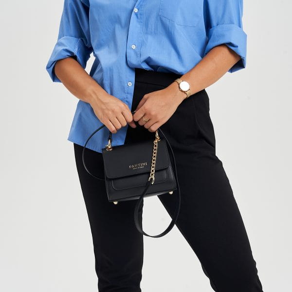 Torebka Cleo uosabia esencję włoskiego rzemiosła dzięki wyrafinowanemu designowi i wysokiej jakości materiałom – eleganckiemu dodatkowi, który przemienia każdy strój w stylowy wyraz. Mistrzowsko wykonana we Włoszech, ta sztywna skórzana torba została zaprojektowana dla nowoczesnej kobiety, która nie idzie na kompromis między estetyką a funkcjonalnością. Kolorystyczny projekt, łączący głęboką czerń z ceglastą czerwienią i czystą bielą, natychmiast przyciąga uwagę, czyniąc Cleo wyjątkowym i wszechstronnym dziełem. Zewnętrzne magnetyczne zamknięcie nie tylko zapewnia bezpieczeństwo Twoich rzeczy osobistych, ale także dodaje całości wyrafinowania. Złote metalowe detale, takie jak klamry na uchwytach, dopełniają luksusową estetykę torby, czyniąc ją niezbędnym dodatkiem dla tych, którzy pragną wyrafinowanego i nowoczesnego wyglądu. Z Cleo u boku nosisz ze sobą włoskie rzemiosło, które świadczy o jakości, tradycji i modzie – wszystko to w jednym unikalnym i niepowtarzalnym dodatku.