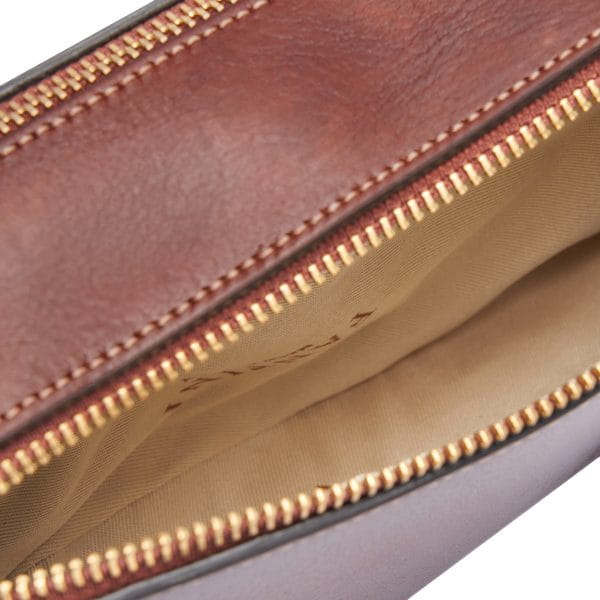 Brązowa torba Jazzy na ramię oddaje ciepło naturalnej skóry i pokazuje umiejętności włoskiego rzemiosła. Wykonany z pełnoziarnistej skóry garbowanej roślinnie i starannie ręcznie wykończony, harmonizuje półsztywną strukturę z subtelnymi, lecz eleganckimi liniami. Mierzący 19 × 7 × 12 cm, prezentuje zwartą, lecz praktyczną konstrukcję, wzmocnioną dwoma wewnętrznymi bawełnianymi przegródkami, które pomagają utrzymać organizację i efektywność. Zamknięcie wyposażone jest w dwa solidne metalowe zamki na górze, zapewniające płynną obsługę, a regulowany i odpinany skórzany pasek zapewnia elastyczność w przenoszeniu. Logo Fantini, wytłoczone z precyzją, podkreśla jego autentyczność. Wyposażony w ochronną tkaninę i objęty 24-miesięczną gwarancją, brązowy Jazzy stanowi doskonały wybór dla tych, którzy cenią ponadczasowe akcesoria wykonane na wysokim poziomie.