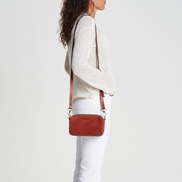Brązowa torba Jazzy na ramię oddaje ciepło naturalnej skóry i pokazuje umiejętności włoskiego rzemiosła. Wykonany z pełnoziarnistej skóry garbowanej roślinnie i starannie ręcznie wykończony, harmonizuje półsztywną strukturę z subtelnymi, lecz eleganckimi liniami. Mierzący 19 × 7 × 12 cm, prezentuje zwartą, lecz praktyczną konstrukcję, wzmocnioną dwoma wewnętrznymi bawełnianymi przegródkami, które pomagają utrzymać organizację i efektywność. Zamknięcie wyposażone jest w dwa solidne metalowe zamki na górze, zapewniające płynną obsługę, a regulowany i odpinany skórzany pasek zapewnia elastyczność w przenoszeniu. Logo Fantini, wytłoczone z precyzją, podkreśla jego autentyczność. Wyposażony w ochronną tkaninę i objęty 24-miesięczną gwarancją, brązowy Jazzy stanowi doskonały wybór dla tych, którzy cenią ponadczasowe akcesoria wykonane na wysokim poziomie.