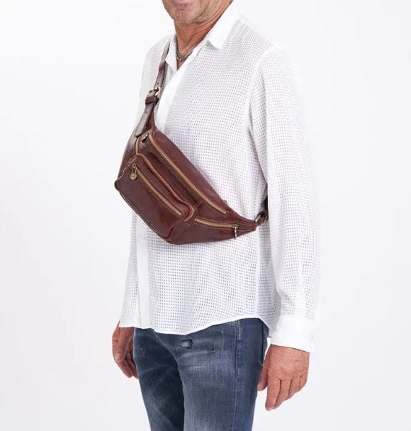 To ekskluzywne akcesorium łączy w sobie ponadczasową elegancję i niezrównaną funkcjonalność, oferując stylowy sposób na noszenie wszystkiego, co ważne. Kolor testa di moro, czyli głęboki odcień brązu, jest symbolem klasy i wyrafinowania, a model Colombo oddaje go w najczystszej formie. Ten bogaty, otulający ton doskonale komponuje się z każdym stylem – od casualowego po elegancki – sprawiając, że Twój wygląd zawsze pozostaje nienaganny. Każdy marsupio Colombo to rezultat mistrzowskiego rzemiosła i dbałości o detale, dzięki czemu jest solidny, trwały i odporny na codzienne użytkowanie, zachowując przy tym swój niepowtarzalny urok. Skórzany marsupio w kolorze brązowym to idealny wybór dla mężczyzn ceniących równowagę między stylem a funkcjonalnością, elegancję i niezawodność w jednym dodatku.