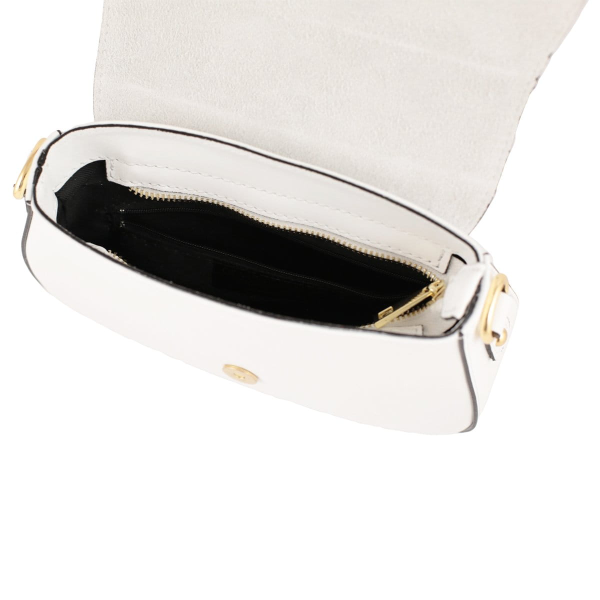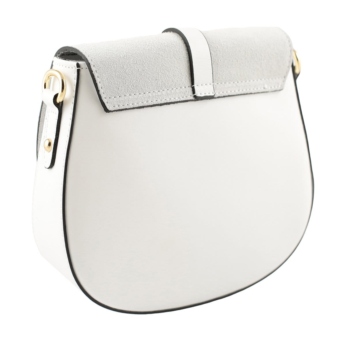 Model Bologna w kolorze białym to prawdziwa ikona naszej galanterii skórzanej, doceniana za trwałość i szlachetność użytego materiału oraz elegancki, ponadczasowy design. Torebka wykonana z prawdziwej skóry szczotkowanej i odwróconej została ręcznie uszyta we Włoszech przez doświadczonych rzemieślników. Jej sztywna konstrukcja i wyrafinowane detale czynią ją idealnym dodatkiem na każdą okazję. Zapięcie na metalowy suwak i magnetyczny guzik ukryte pod klapą ozdobioną paskiem ze skóry i subtelnymi metalowymi elementami zapewnia zarówno styl, jak i bezpieczeństwo. Wnętrze wyściełane bawełną jest przestronne i zawiera kieszeń zapinaną na zamek, w której zmieścisz wszystkie niezbędne przedmioty – telefon, portfel czy klucze. Regulowany i odpinany skórzany pasek umożliwia noszenie torebki na ramię lub przez ciało. Biel nadaje jej świeżości i uniwersalności, dzięki czemu z łatwością dopasuje się do każdego stroju, od codziennego po elegancki. Wybierz Bologna – esencję włoskiego stylu i rzemiosła.