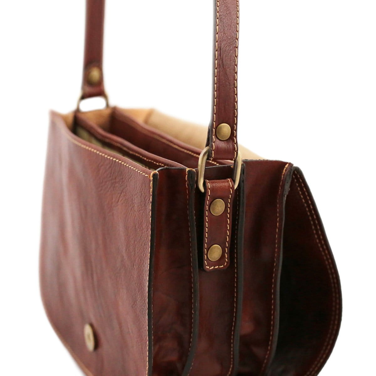 Ponadczasowy styl i niezrównana funkcjonalność – brązowa torebka na ramię Fantini Pelletteria to prawdziwa ikona włoskiego rzemiosła. Wykonana z najwyższej jakości skóry pełnoziarnistej garbowanej roślinnie i tamponowanej ręcznie, zachwyca trwałością oraz klasycznym charakterem. Jej wnętrze podzielone jest na trzy przestronne przegrody, dzięki czemu z łatwością pomieści wszystkie niezbędne przedmioty w idealnym porządku. Torebka doskonale sprawdzi się zarówno w pracy, na uczelni, jak i podczas spotkania ze znajomymi czy spaceru. Każdy egzemplarz szyty jest ręcznie przez doświadczonych włoskich rzemieślników z dbałością o najmniejsze detale, co widać w precyzyjnych szwach i wykończeniach. Wytłoczone logo Fantini Pelletteria na klapce podkreśla jej autentyczność i elegancję. Model ten łączy klasykę dawnych czasów z nowoczesnym designem, tworząc torebkę o wyjątkowym charakterze i ponadczasowej klasie.