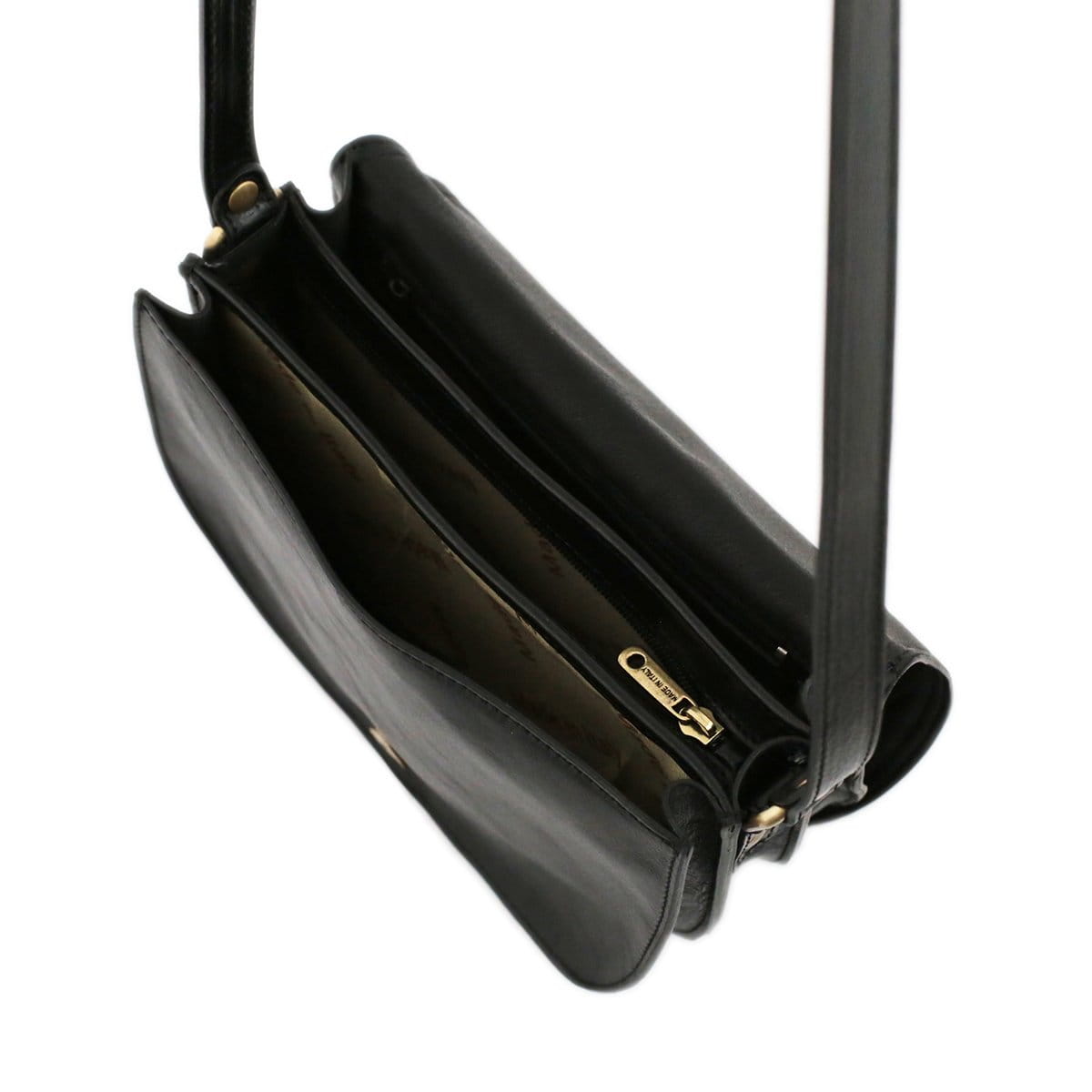 Wygodna, praktyczna i elegancka – czarna skórzana torebka Fantini Pelletteria to idealny wybór na każdy dzień. Zaprojektowana z myślą o funkcjonalności i ponadczasowym stylu, łączy w sobie elegancję włoskiego designu z rzemieślniczą precyzją wykonania. Posiada trzy oddzielne przegrody, tylną kieszeń z metalowym zamkiem, wewnętrzną kieszeń na suwak oraz regulowany, cienki pasek na ramię, który umożliwia komfortowe noszenie. Torebka zamykana jest magnetycznym guzikiem ukrytym pod klapką, dzięki czemu jest bezpieczna i wygodna w użytkowaniu. Wykonana z najwyższej jakości włoskiej skóry pełnoziarnistej garbowanej roślinnie i tamponowanej ręcznie, łączy luksus z trwałością. Jej klasyczny czarny kolor sprawia, że pasuje do każdego stylu – od codziennego po elegancki, od pracy po uroczystości.