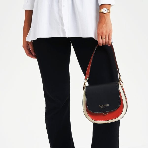 Damska torebka Beatrice to połączenie elegancji i funkcjonalności w doskonałej formie. Wykonana z wysokiej jakości skóry naturalnej, zachwyca swoim wyrafinowanym designem i dbałością o każdy detal. Kontrastowe zestawienie kolorów czerni, bieli i cegły nadaje jej nowoczesny, a zarazem ponadczasowy charakter, sprawiając, że idealnie dopełni każdą stylizację – od codziennej po bardziej formalną. Model Beatrice posiada metalowe zapięcie magnetyczne, które łączy wygodę z elegancją. Wewnątrz znajduje się przestronna komora z dwiema kieszeniami, w tym jedną zapinaną na suwak, przeznaczoną na drobiazgi wymagające dodatkowego bezpieczeństwa. Choć stworzona jako klasyczna torebka do ręki, Beatrice wyposażona jest również w długi, regulowany i odpinany pasek, który umożliwia noszenie jej również na ramieniu lub na skos. Ta podwójna funkcjonalność czyni ją idealnym dodatkiem dla nowoczesnej kobiety, która ceni zarówno styl, jak i praktyczność. Wykonana z pasją i precyzją we włoskich warsztatach, torebka Beatrice to kwintesencja jakości i klasy Made in Italy.
