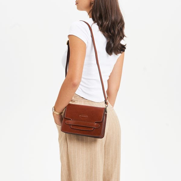 Torebka Dalia w kolorze miodowym to elegancki dodatek, który łączy w sobie estetykę i funkcjonalność w ponadczasowym stylu. Jej ciepły, wyrafinowany odcień nadaje każdej stylizacji nutę klasy i subtelności, dzięki czemu sprawdzi się zarówno na co dzień, jak i podczas bardziej formalnych okazji. Wykonana z wysokogatunkowej, gładkiej skóry naturalnej, oferuje dwa przestronne przedziały wewnętrzne, w tym jeden zapinany na suwak, który doskonale zabezpieczy najcenniejsze drobiazgi. Całe wnętrze jest w pełni wyściełane tkaniną bawełnianą, co zapewnia dodatkową ochronę przechowywanych rzeczy. Regulowany pasek umożliwia noszenie torebki zarówno na ramieniu, jak i na skos, zapewniając wygodę w każdej sytuacji. Dzięki swojej kompaktowej, lecz pojemnej konstrukcji, Dalia to idealna torebka na każdą okazję – od biura, przez spotkania towarzyskie, po wieczorne wyjścia. Elegancja, komfort i praktyczność zamknięte w formie, która przetrwa próbę czasu.