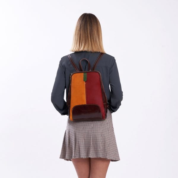 Eksplozja kolorów i niezrównana elegancja — skórzany plecak damski Frida w wersji multikolor to prawdziwa perła włoskiej galanterii. Wykonany we Włoszech z najwyższej jakości skóry naturalnej, zachwyca wyjątkową kombinacją ciepłych i żywych odcieni, które czynią go niepowtarzalnym dodatkiem o silnym charakterze. Każdy etap produkcji — od garbowania skóry po ręczne szycie — jest realizowany z pasją przez włoskich rzemieślników, co gwarantuje doskonałość wykonania i długowieczność produktu. Plecak Frida to połączenie stylu, funkcjonalności i rzemieślniczej precyzji. Idealny do pracy, na uczelnię czy spacer po mieście, doda wyjątkowego uroku każdej stylizacji. Wybierz akcesorium, które łączy praktyczność z osobowością — niech Twój plecak Frida towarzyszy Ci z klasą w każdej sytuacji i przypomina o ponadczasowym pięknie włoskiego rzemiosła.