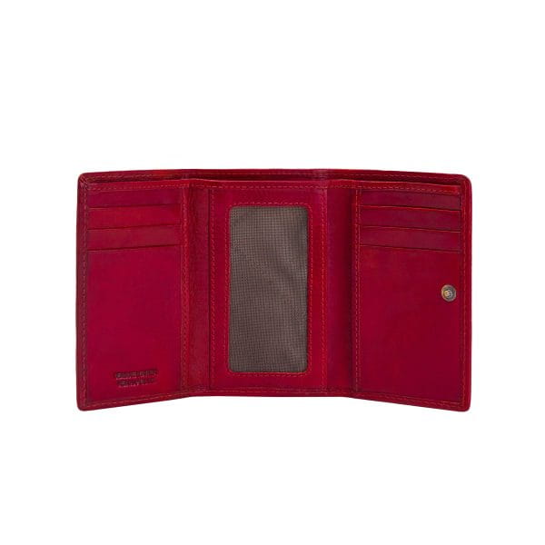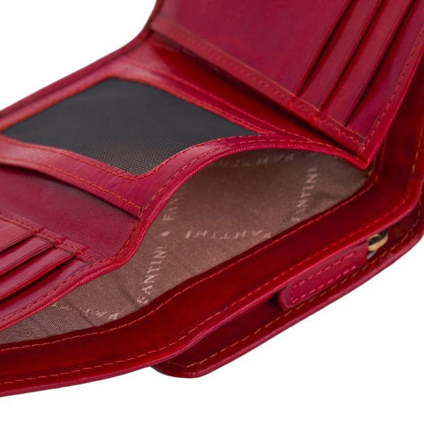 Portfel Eva ze skóry w kolorze czerwonym to wyjątkowy dodatek dla kobiety, która pragnie połączyć elegancję z funkcjonalnością. Wykonany z najwyższej jakości skóry licowej, zachwyca kompaktową formą i wyrafinowanym designem, który dodaje stylu każdej stylizacji. Intensywny czerwony odcień podkreśla charakter i pewność siebie, czyniąc ten portfel odważnym akcentem modowym. Model Eva został zaprojektowany z myślą o praktyczności — posiada 9 przegródek na karty, jedno miejsce na banknoty oraz wewnętrzną kieszeń na monety zamykaną na zamek. Pomimo niewielkich rozmiarów, oferuje wystarczająco dużo miejsca, aby pomieścić wszystko, co niezbędne na co dzień. Solidne zamknięcie i precyzyjnie wykonane detale gwarantują trwałość i zachowanie eleganckiego wyglądu przez lata. To doskonały wybór dla kobiet, które cenią luksus, styl i praktyczność w jednym – idealny zarówno do pracy, jak i na wieczorne wyjścia. Portfel Eva w kolorze czerwonym to symbol włoskiego rzemiosła i ponadczasowego gustu.