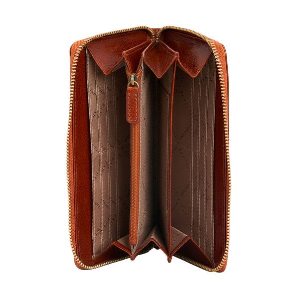 Portfel Maia to prawdziwy klejnot włoskiego rzemiosła, wykonany z pasją i precyzją z prawdziwej toskańskiej skóry w kolorze miodowym. Ten elegancki dodatek został stworzony z myślą o nowoczesnej kobiecie, która pragnie połączyć styl i funkcjonalność. Jego gładkie, miękkie w dotyku wykończenie podkreśla luksusowy charakter, a zamek błyskawiczny biegnący wokół całego portfela zapewnia maksymalne bezpieczeństwo przechowywanych przedmiotów. Wnętrze portfela Maia oferuje liczne przegródki na karty, banknoty i dokumenty, pomagając utrzymać idealny porządek i szybki dostęp do wszystkiego, czego potrzebujesz. Nie zabrakło również praktycznej kieszeni na monety zamykanej na suwak, idealnej do przechowywania drobnych i cennych przedmiotów. Każdy detal odzwierciedla kunszt włoskich rzemieślników i wysoką jakość toskańskiej skóry, czyniąc z portfela Maia wyjątkowy dodatek, który łączy piękno włoskiego designu z codzienną praktycznością. To doskonały wybór zarówno na prezent, jak i jako elegancki towarzysz dnia codziennego.