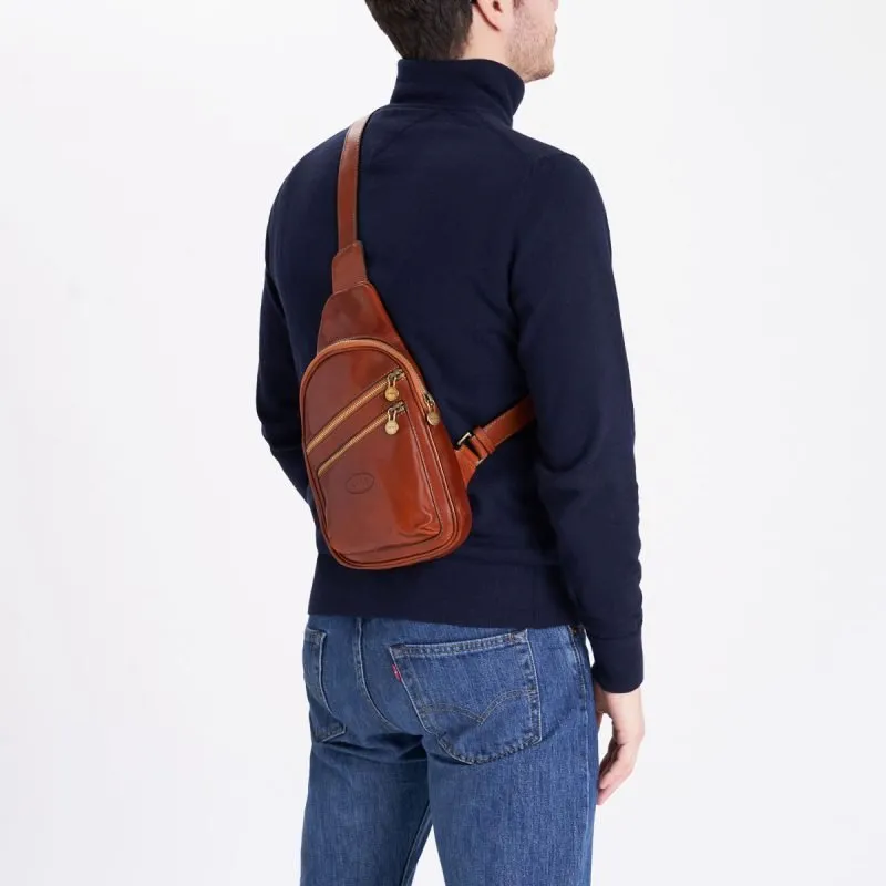 Torba na ramię to dodatek, który cenią mężczyźni na całym świecie – praktyczna, elegancka i niezwykle wygodna. Pozwala przechowywać portfel, klucze, telefon i inne niezbędne drobiazgi bez konieczności upychania ich w kieszeniach czy noszenia w rękach. Męska torba na jedno ramię z kolekcji Fantini Pelletteria to idealny towarzysz na co dzień. Jej nowoczesny design sprawia, że doskonale komponuje się z każdym stylem – zarówno casualowym, jak i eleganckim. Skóra licowa garbowana roślinnie i ręcznie polerowana nadaje jej trwałość, elastyczność i charakter, który z biegiem czasu nabiera jeszcze większego uroku. Model wyróżnia się licznymi zewnętrznymi kieszeniami z metalowymi zamkami, pojemnym wnętrzem, regulowanym paskiem, tylną kieszenią oraz logo Fantini tłoczonym na gorąco. To klasyk, którego nie może zabraknąć w garderobie współczesnego mężczyzny.